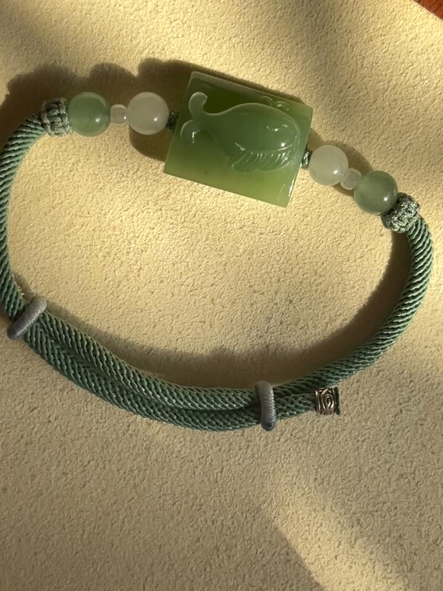 Bracelet Crafted From Hand Carved Hetian Jade Whale Pendant | 和田晴水小鲸鱼手牌