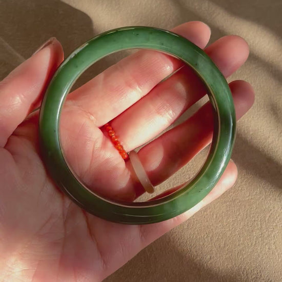 Dark Green Hetian Jade Bangle 58mm | 碧玉手镯