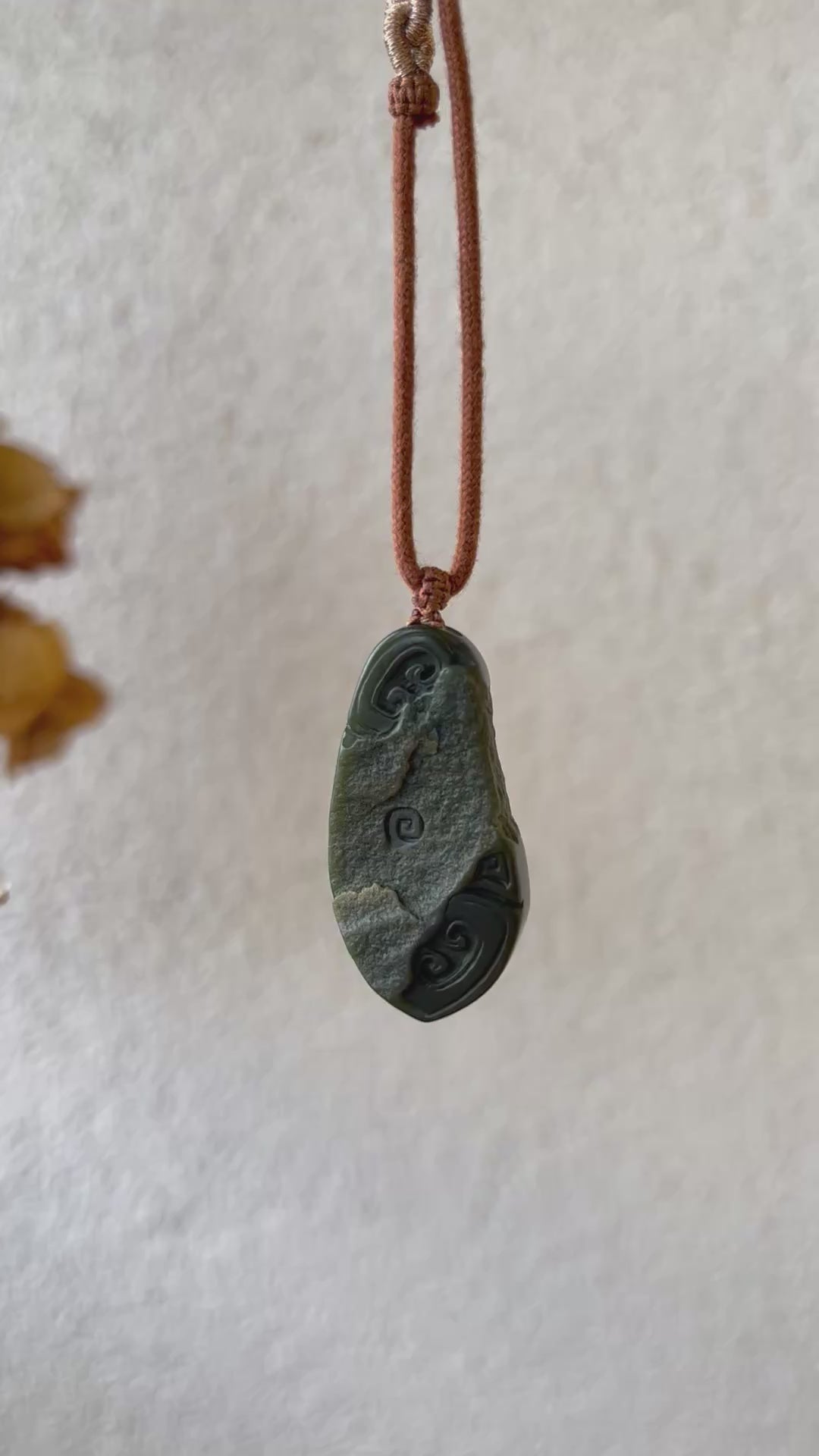 One side of the pendant retains its original jade skin, adding a natural charm and touch of raw elegance. The piece is intricately carved with the classic ‘Hui’ pattern, a timeless motif symbolizing harmony, continuity, and everlasting blessings.