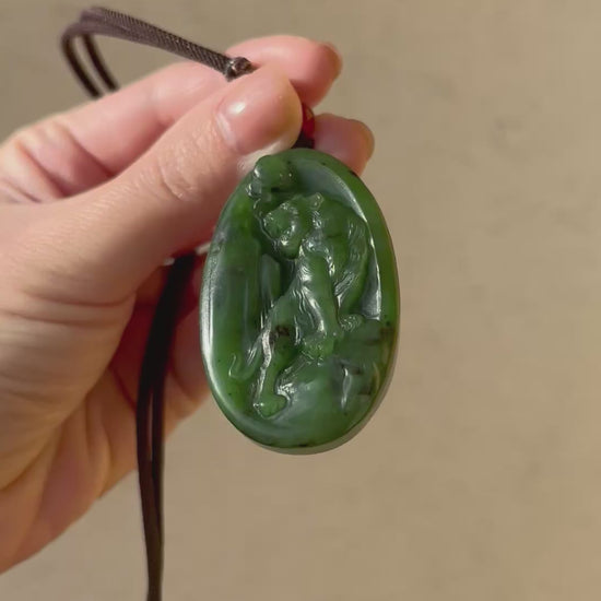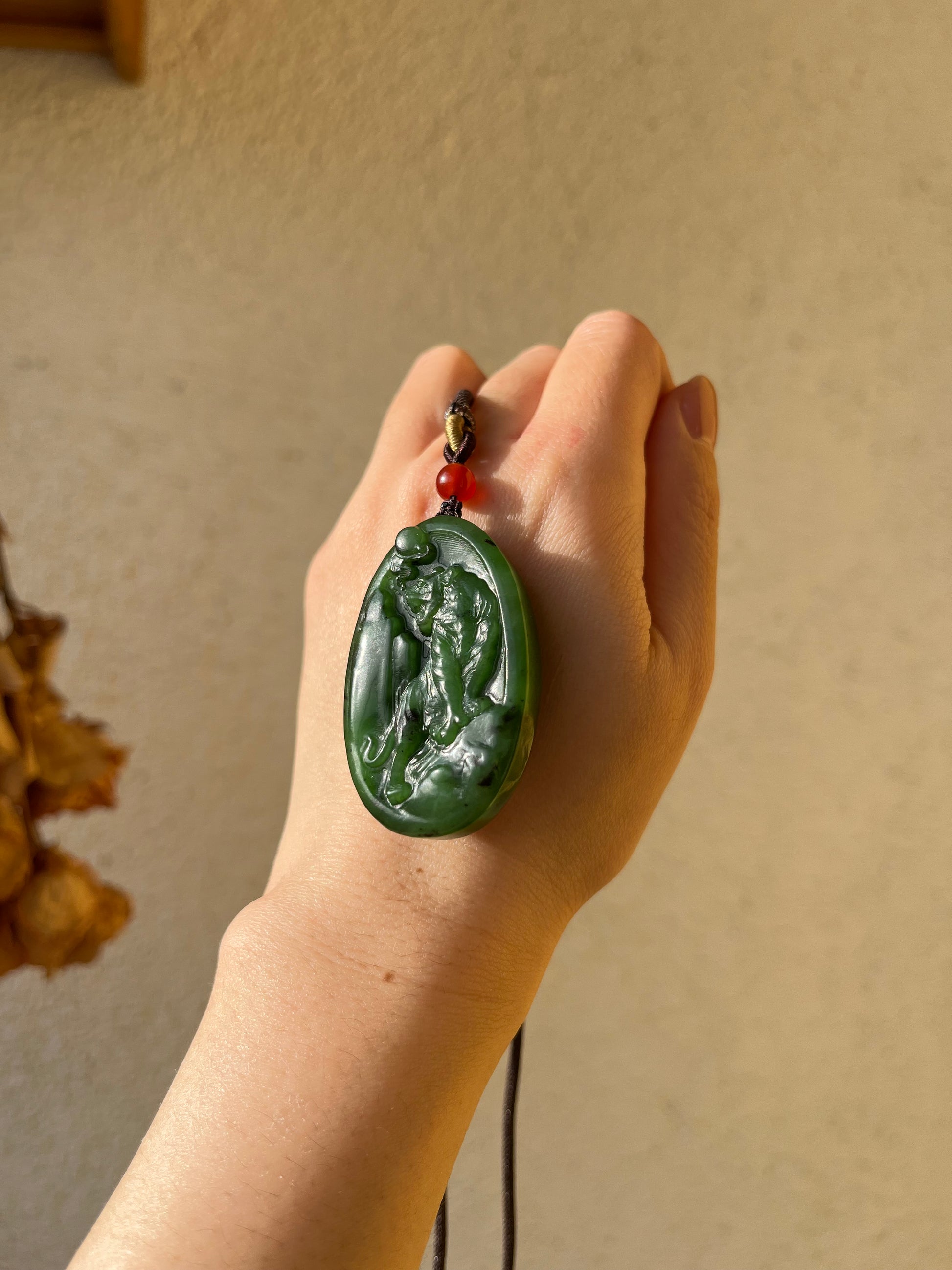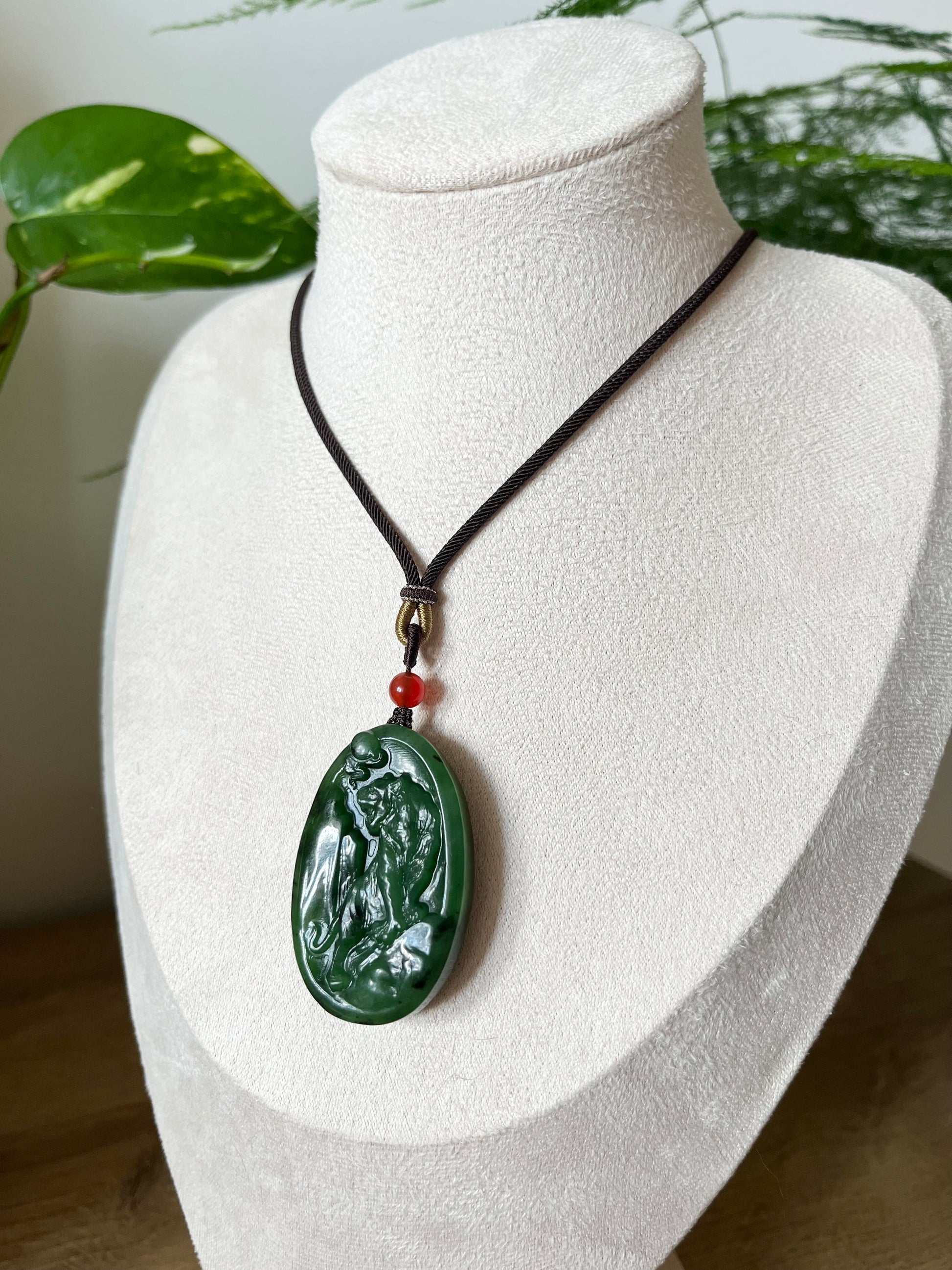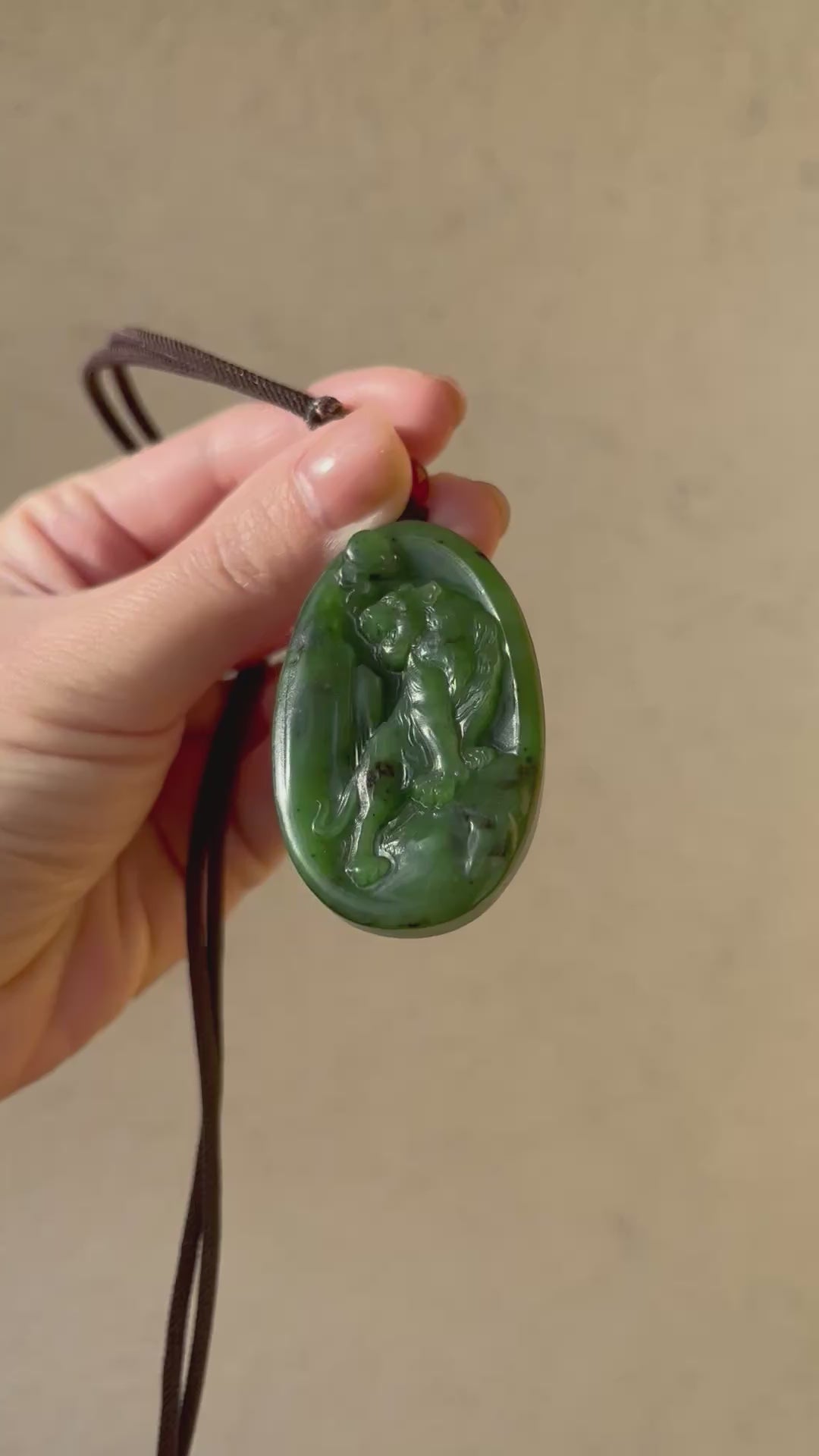 The Jade Uphill Tiger pendant features a powerful and dynamic depiction of a tiger climbing a steep incline, symbolizing perseverance, strength, and determination.