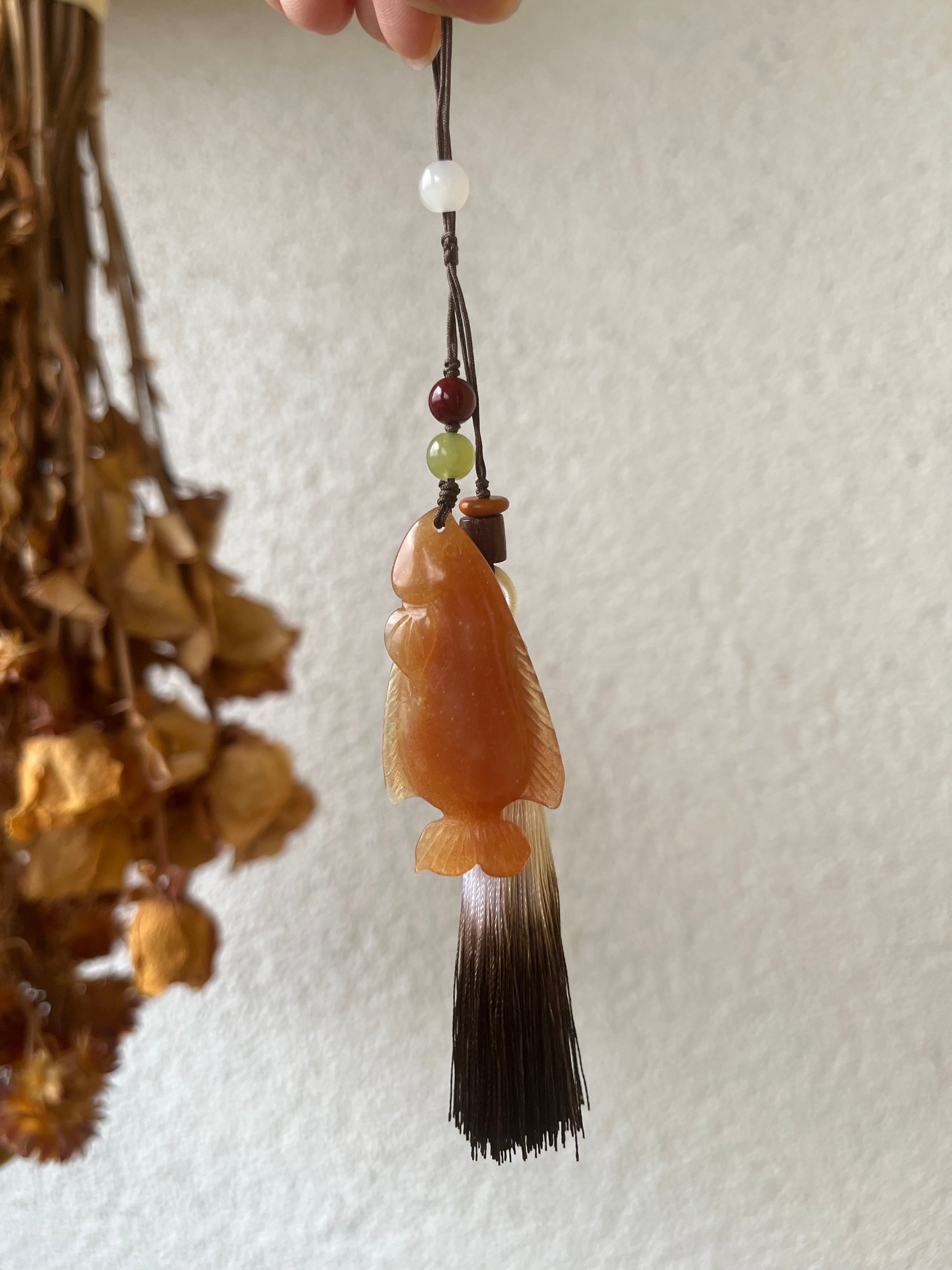 Phone charm / bag charm crafted from hand carved Xiu jade fish.
