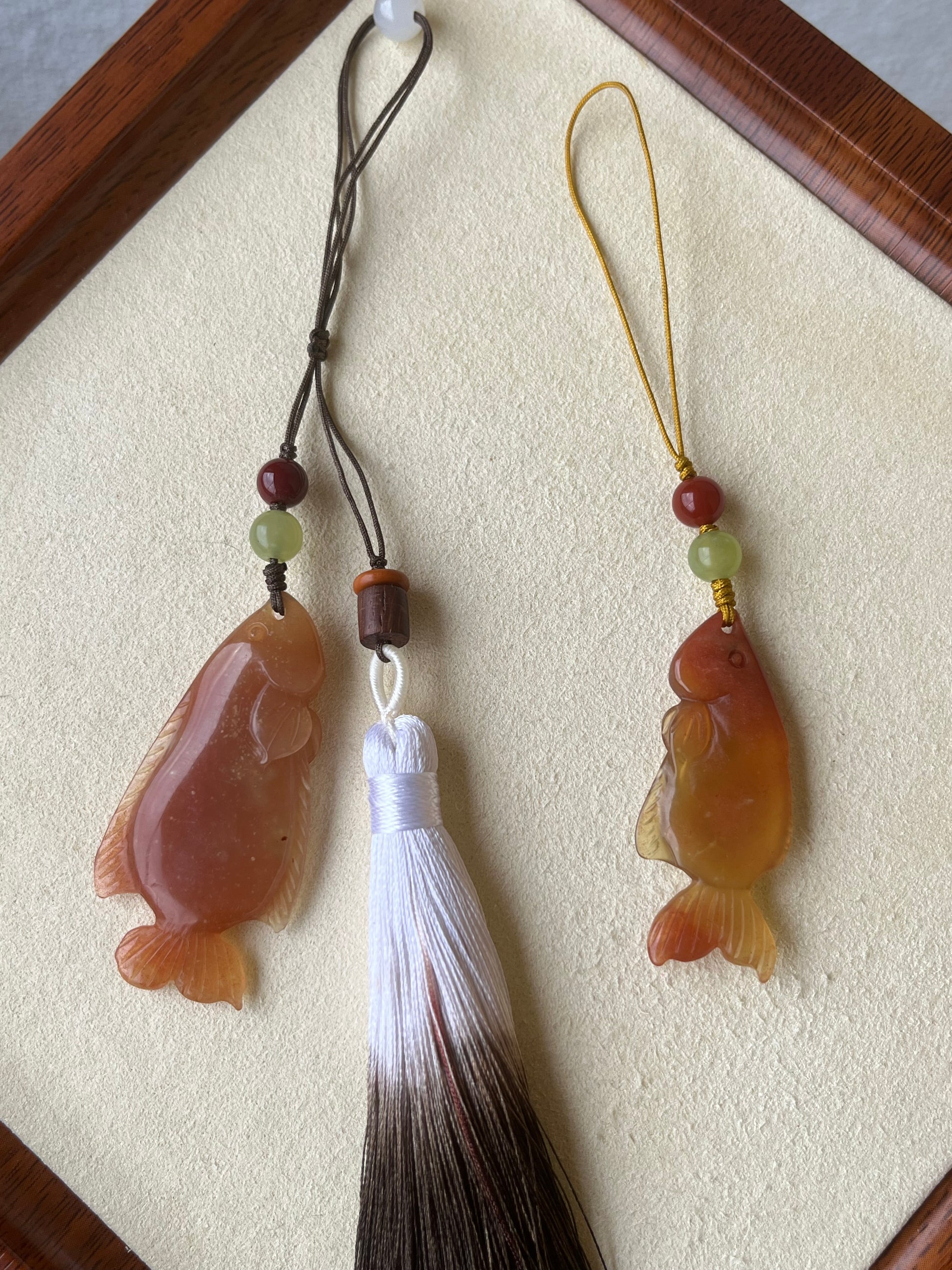Hand Carved Xiu Jade Fish Phone Charm / Bag Charm