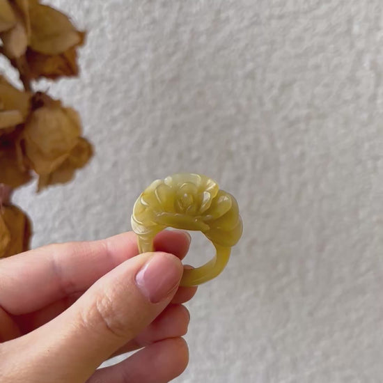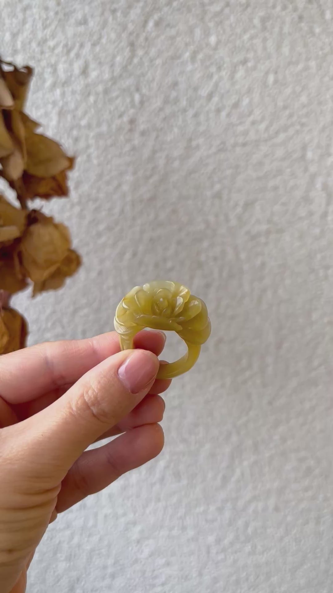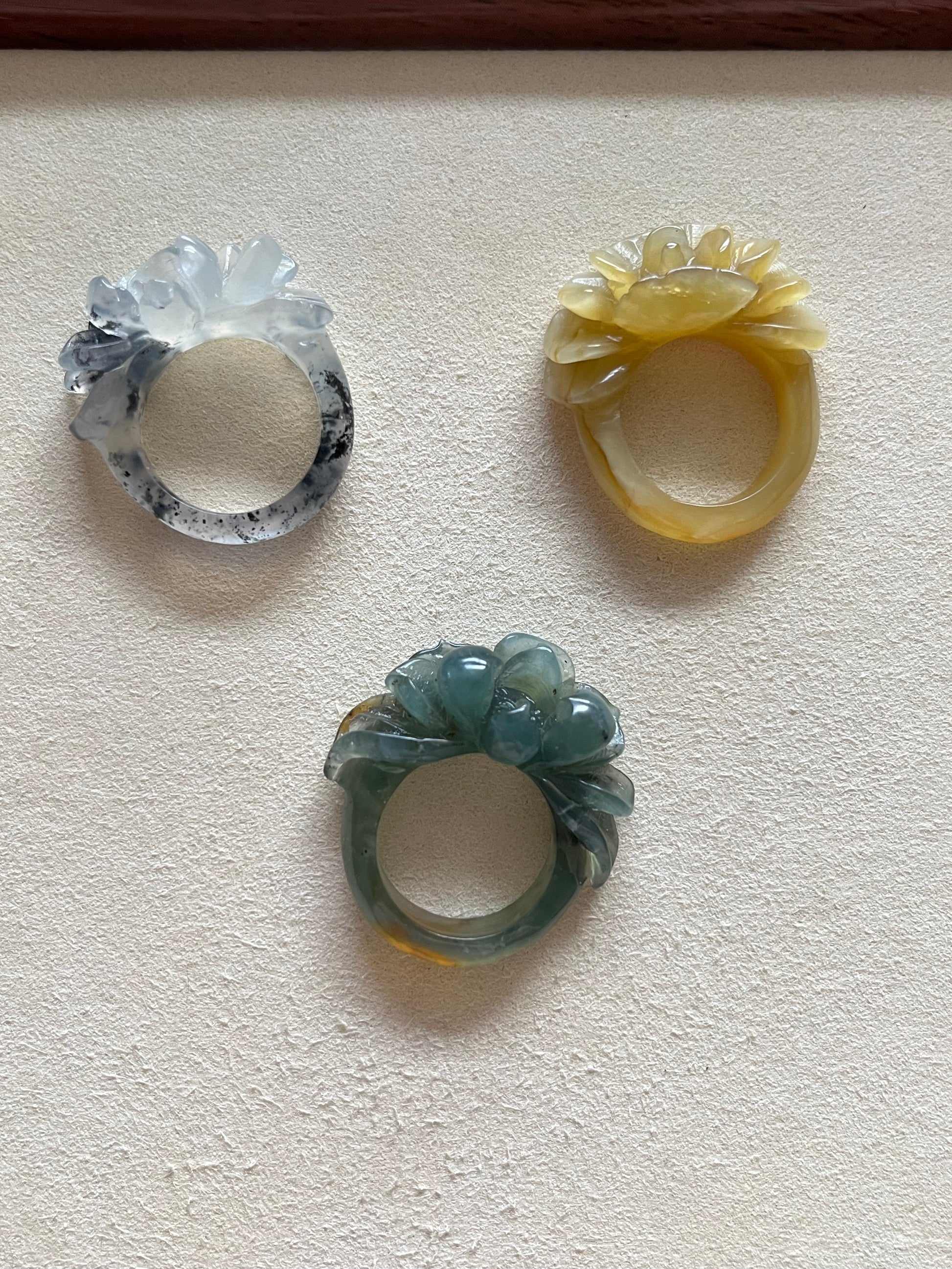 Hand Carved Xiu Jade Flower Rings | 手雕岫玉花戒圈