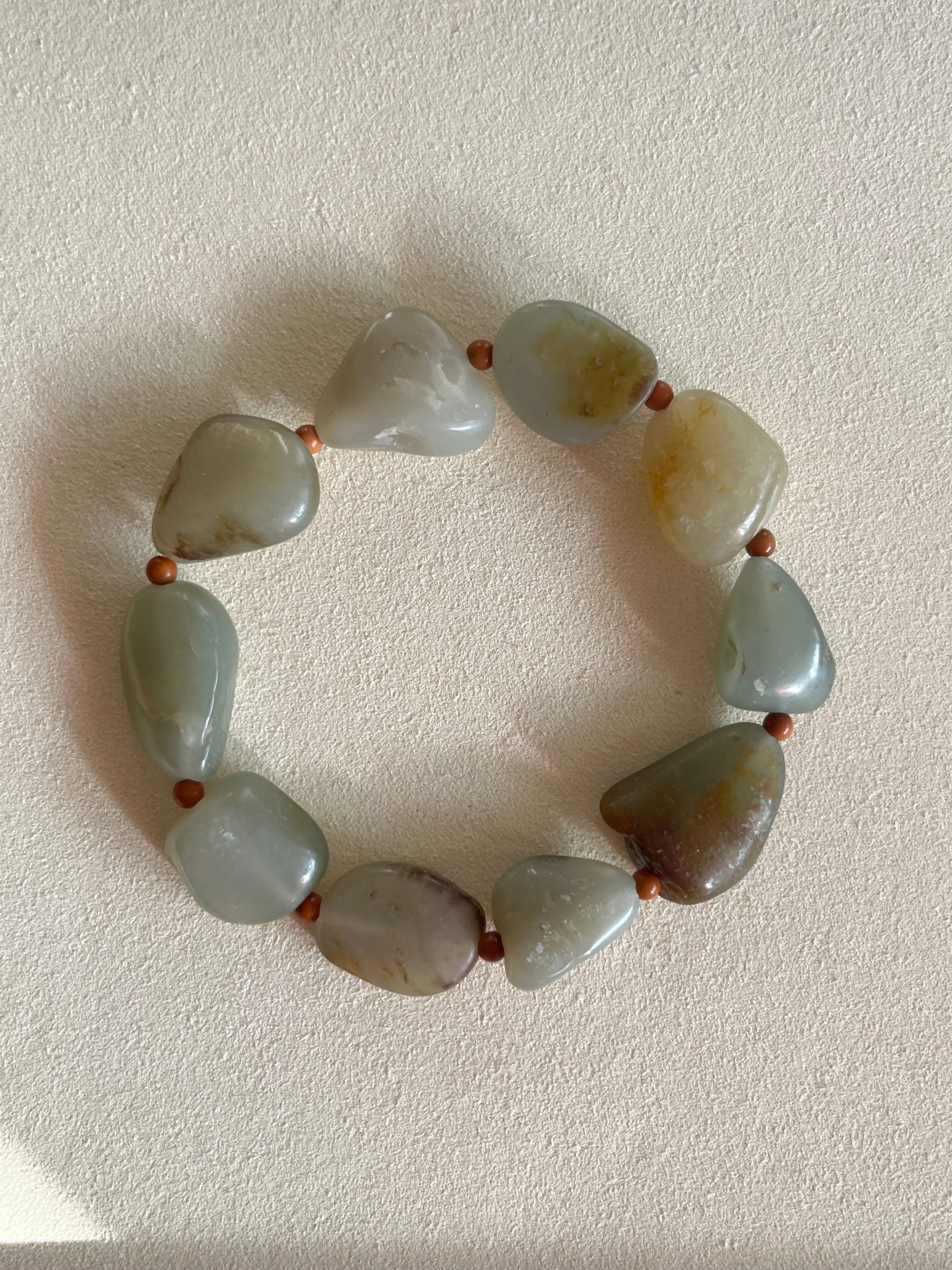 I got this bracelet because I wanted to see and feel the jade pebbles, turned out it's not for me. I offer a good price for its destined owner.